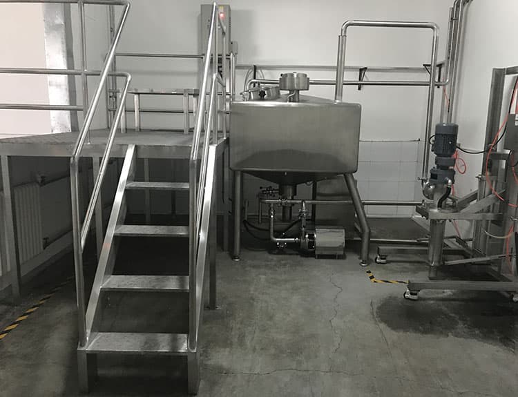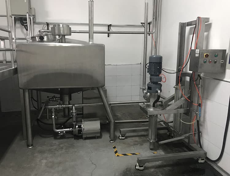 將一種或多種物料(水溶性固相、液相或膠狀物等)溶于另一種液相,并使其與水合成為相對(duì)穩(wěn)定的乳化液。廣泛適用于食用油類(lèi)、粉類(lèi)、糖類(lèi)等原輔料的乳化混合,某些涂料、油漆乳化分散也使用乳化罐,尤其適用于某些難溶膠狀類(lèi)添加劑如CMC、黃原膠等。