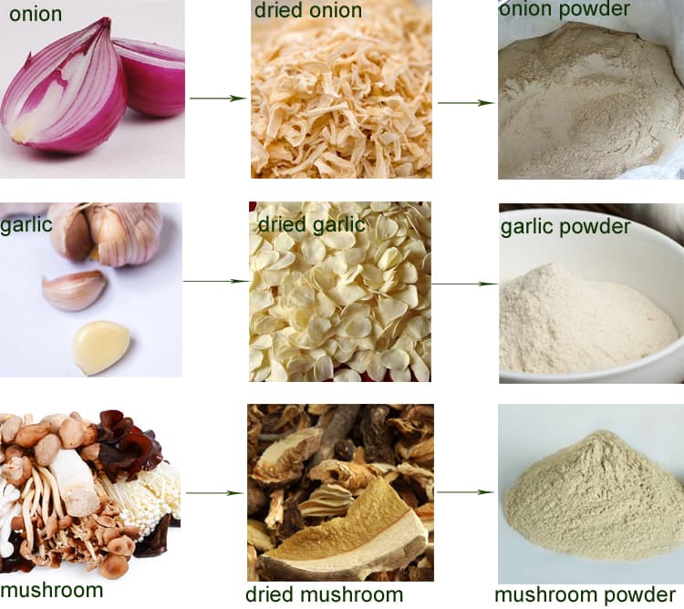 蔬菜粉生產(chǎn)流程:清洗——切片——烘干——粉碎